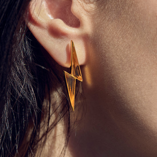 The Ignite Citrine Earrings are lightning-bolt earrings in 18ct gold vermeil, set with semi-precious citrine. Bold and radiant, they symbolise light, transformation, and success.