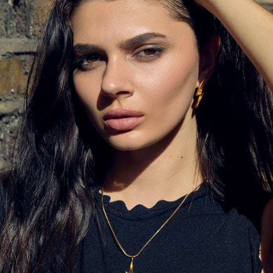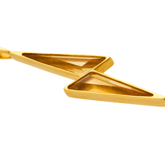 The Ignite Citrine Pendant is a lightning-bolt necklace in 18ct gold vermeil, set with semi-precious citrine on a sleek snake chain. A radiant design that symbolises creativity, prosperity, and transformation.