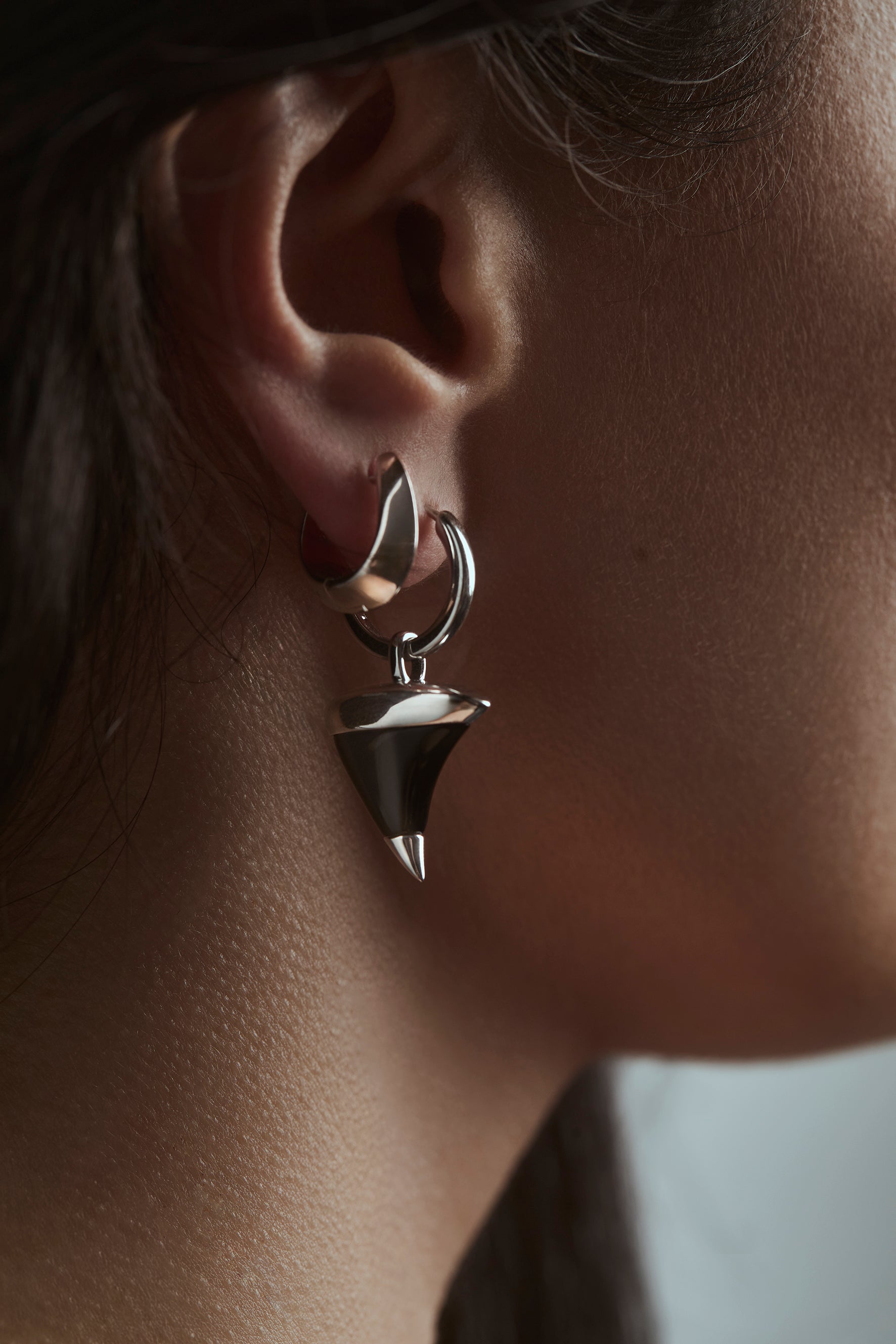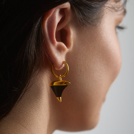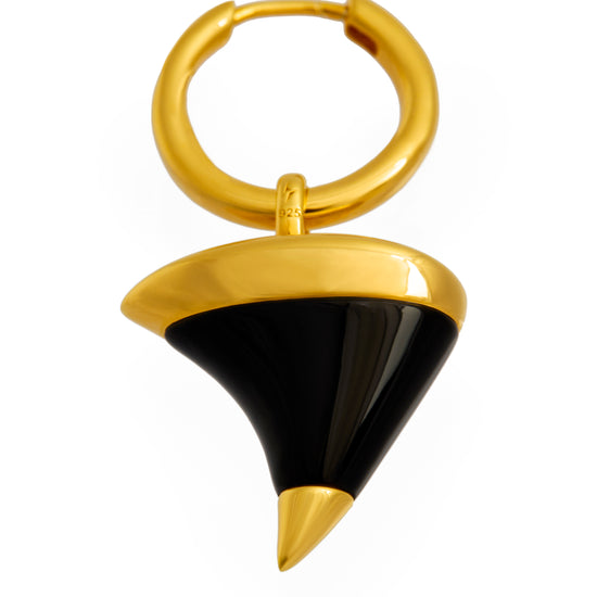 The Midnight Thorn earrings pairs a sleek huggie with a sculpted black onyx thorn charm, capped in 18ct gold vermeil or rhodium-plated sterling silver. A bold earring that blends edge with symbolism.