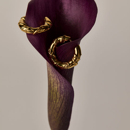 Sculpted to reflect the fierce elegance of wild thorn bushes, these hoops embody resilience and freedom. The thorns embrace the curve of the hoop, a reminder of the duality of nature — protective yet alluring, sharp yet refined.